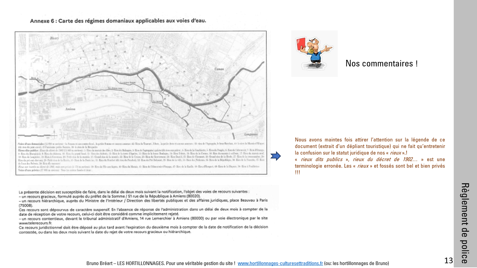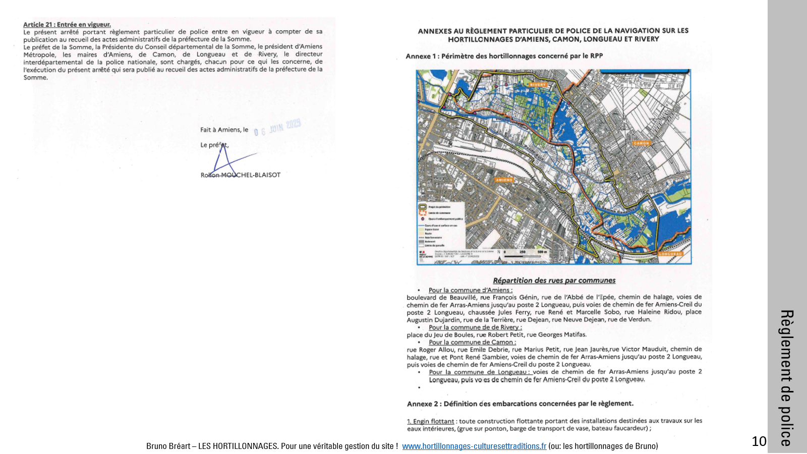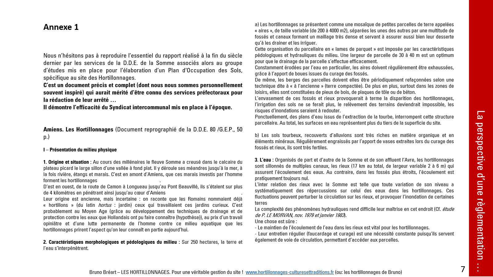 - Document: Note du Grand District d'Amiens en date du 22 décembre 1998 précisant "les principaux règlements propres au site des Hortillonnages". Ce document était joint à l'acte de vente d'une parcelle délivré par certains notaires. Voir notre page: (en attente)