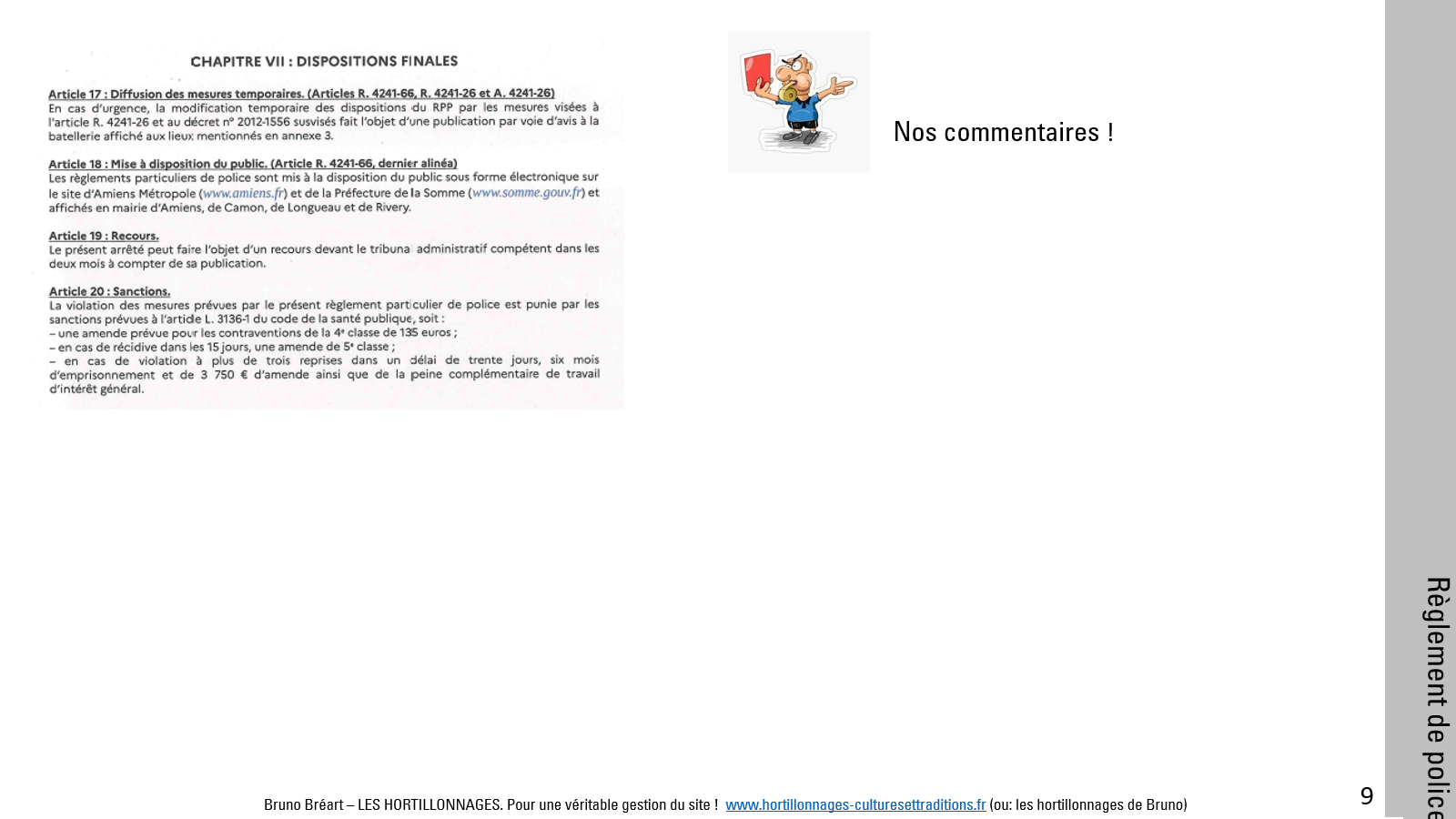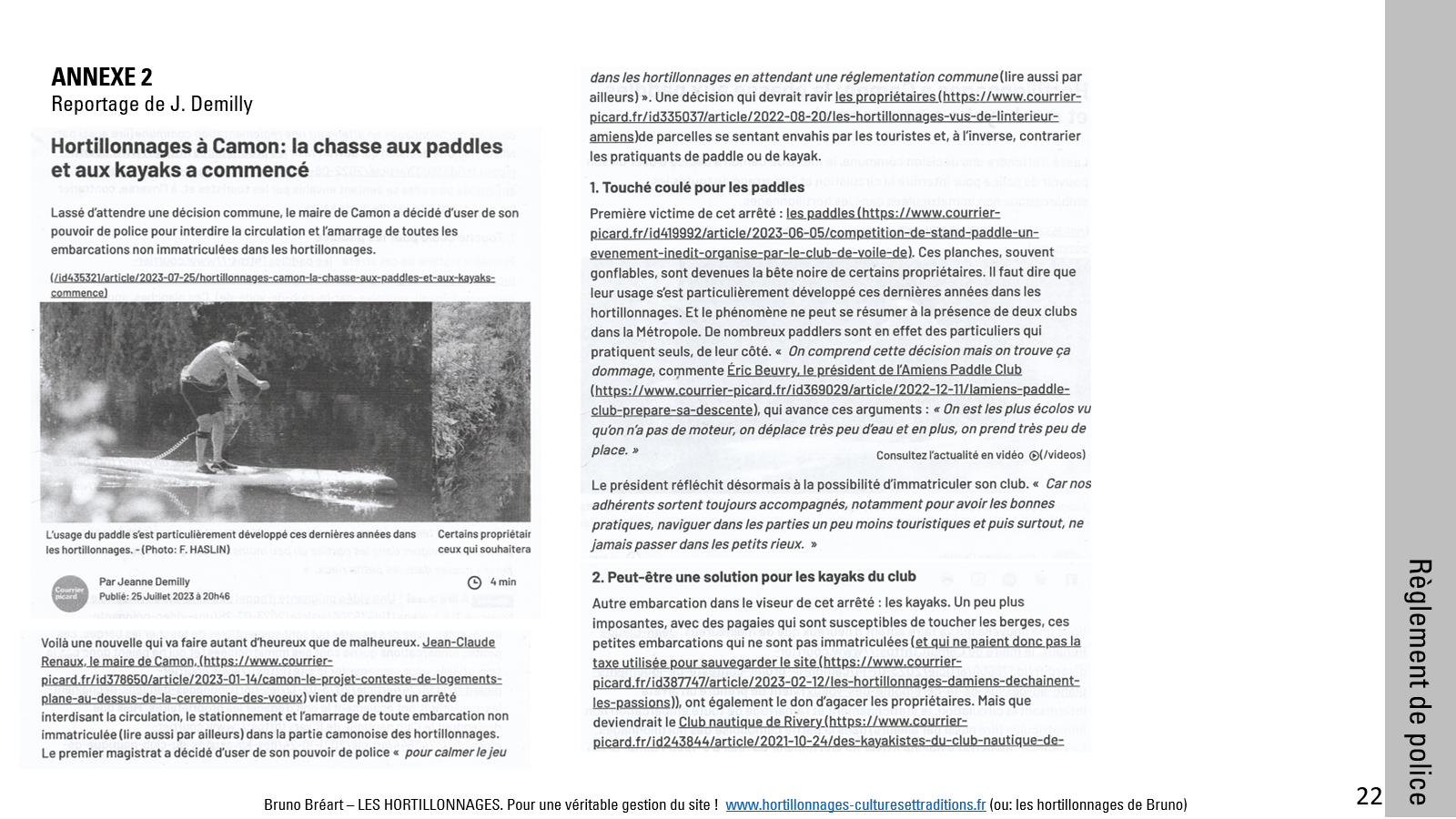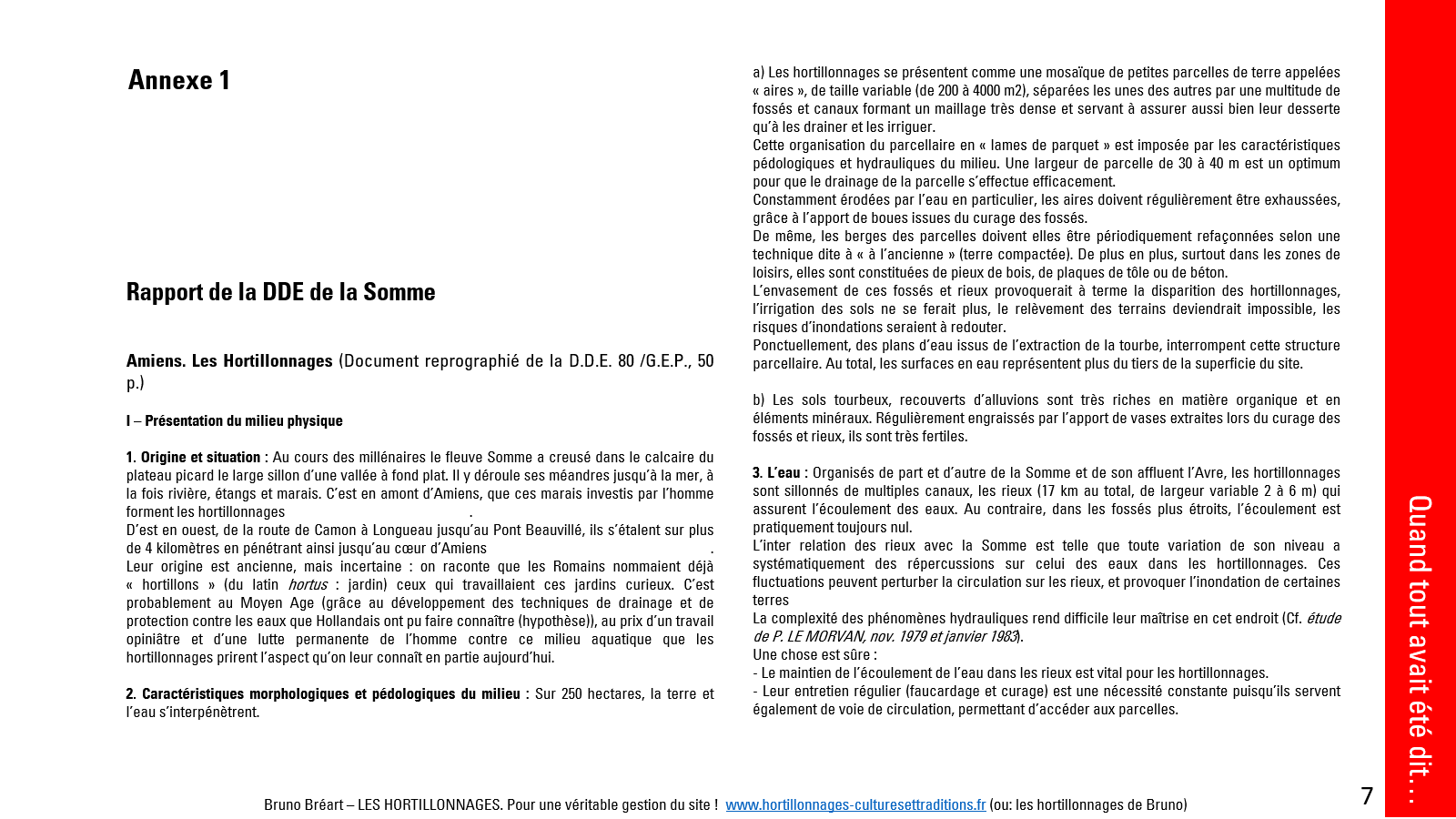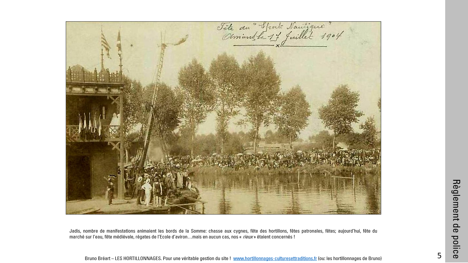 - Document: Note du Grand District d'Amiens en date du 22 décembre 1998 précisant "les principaux règlements propres au site des Hortillonnages". Ce document était joint à l'acte de vente d'une parcelle délivré par certains notaires. Voir notre page: (en attente)
