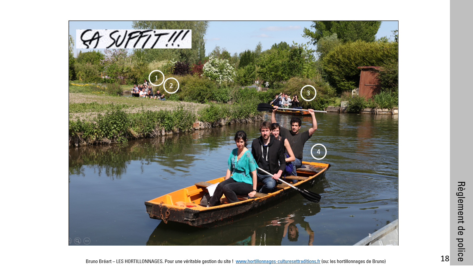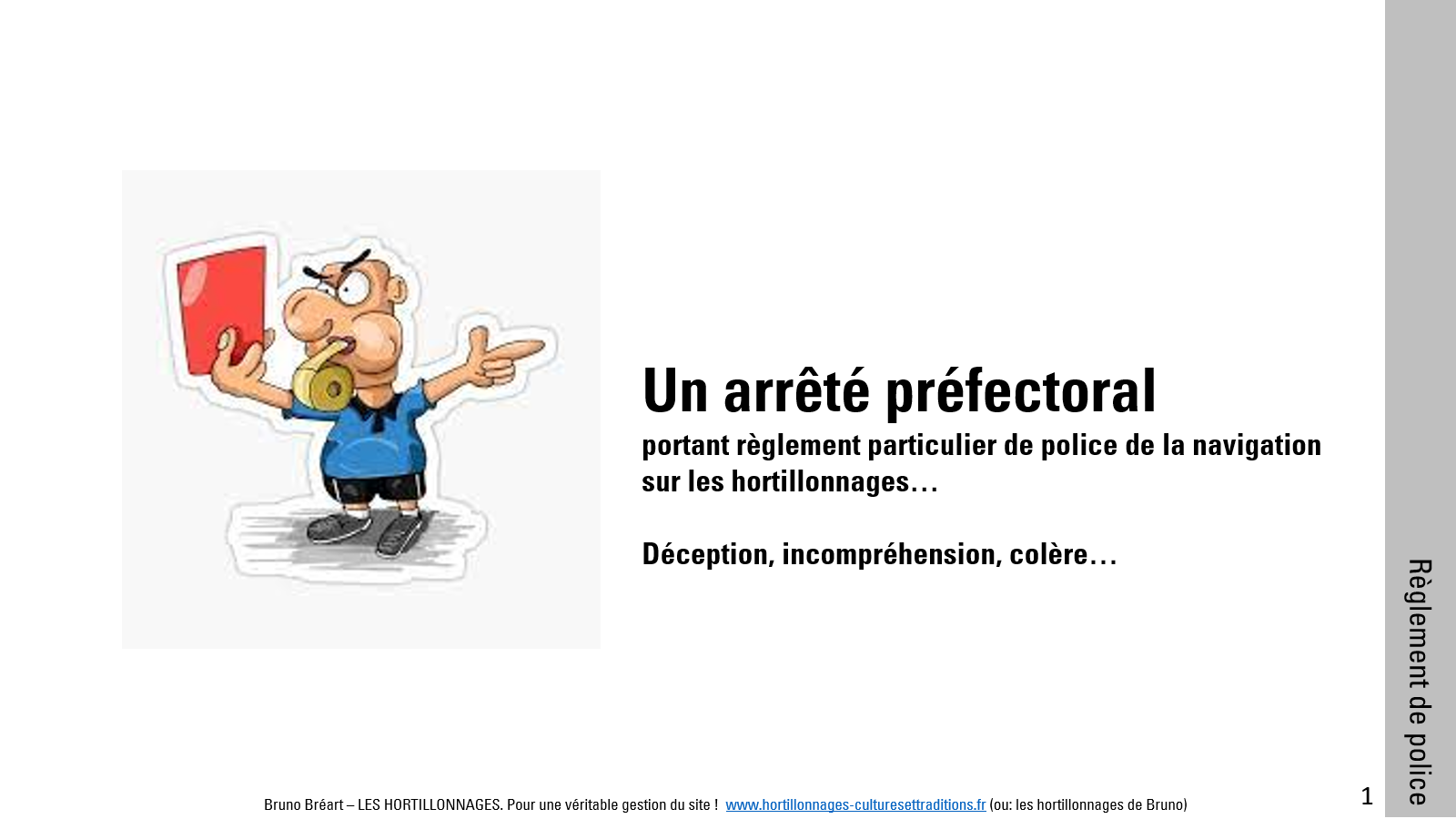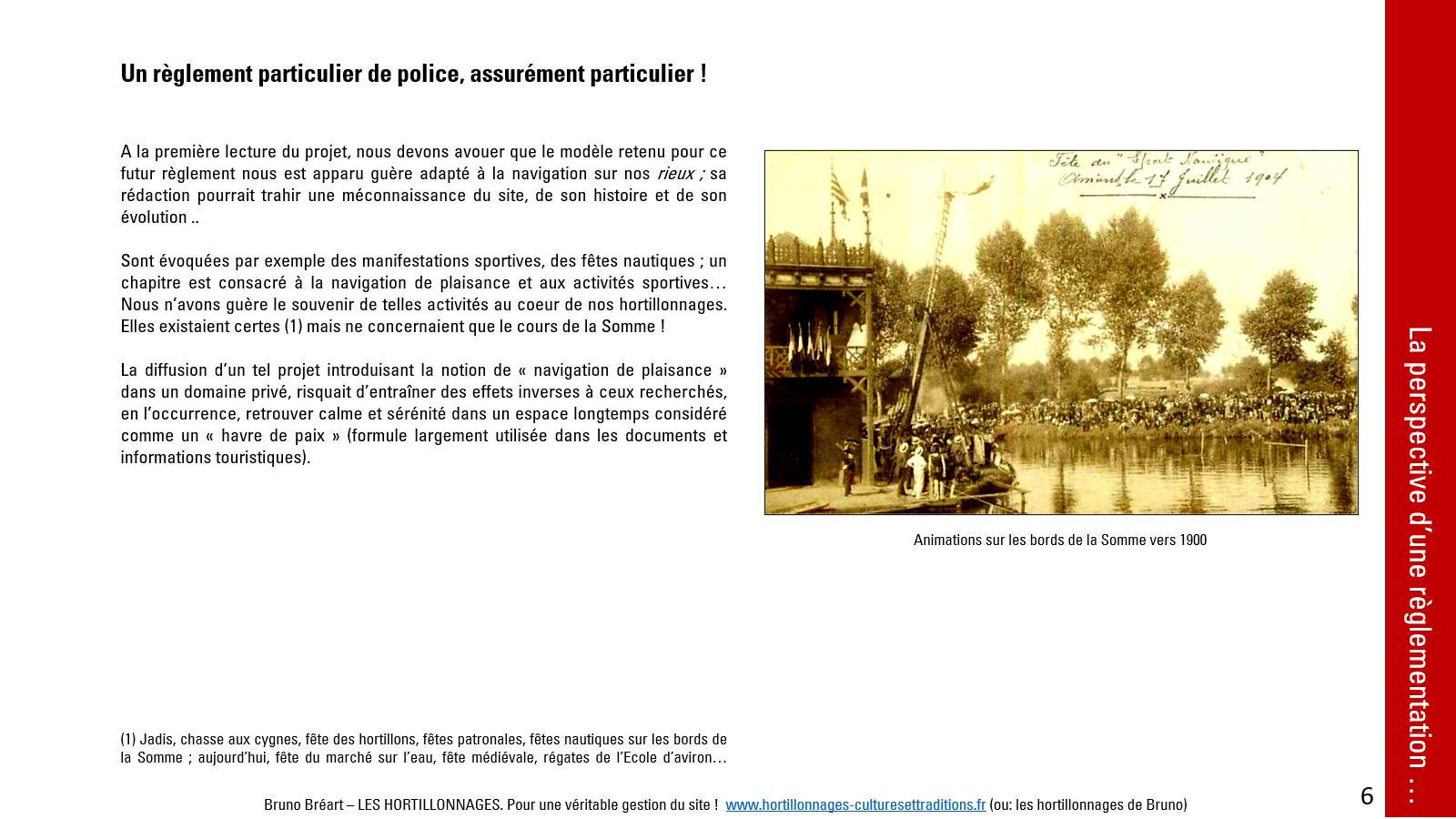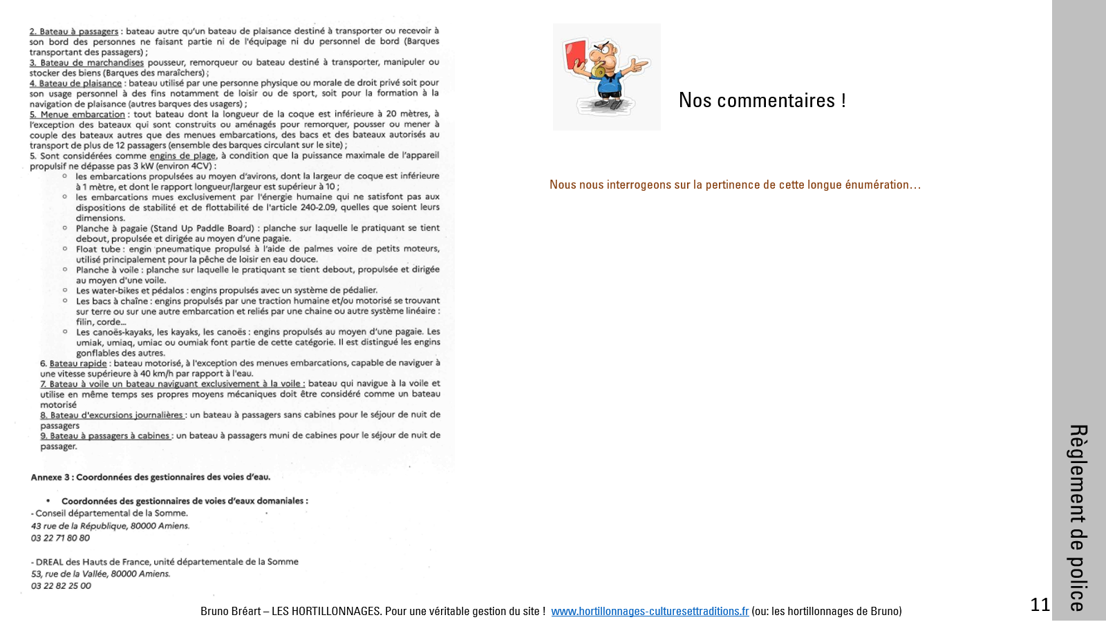 Formule souvent usitée au sein de nos administrations; normal me direz-vous puisque nous évoquons nos hortillonnages ! Il semblerait en effet, à la lecture du règlement adopté, que la préfecture se soit limitée à satisfaire les "organisateurs d'activités" .