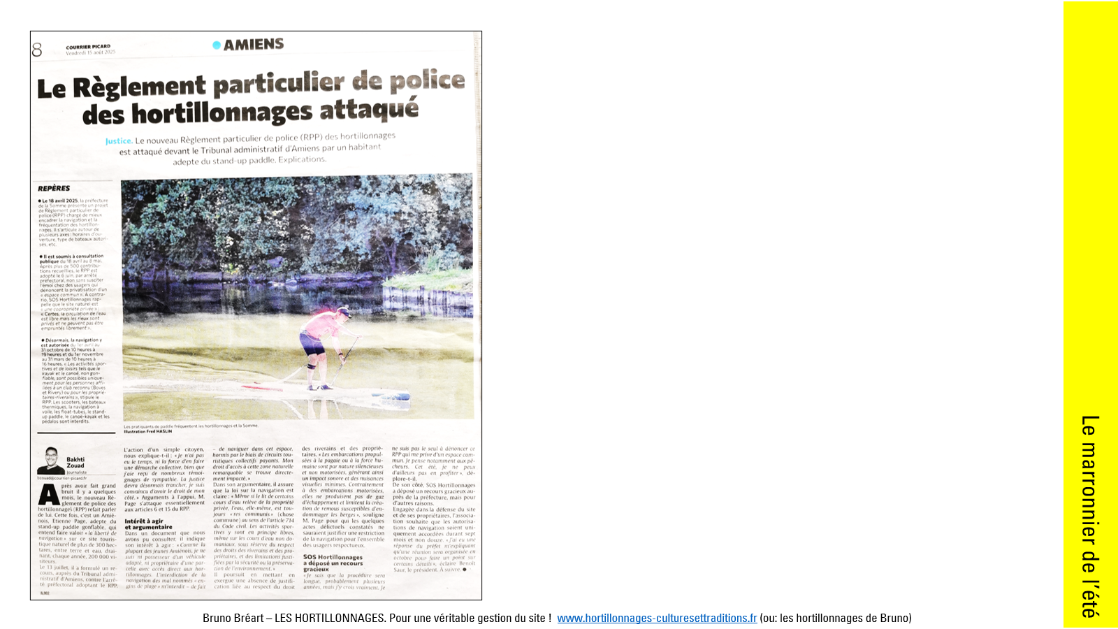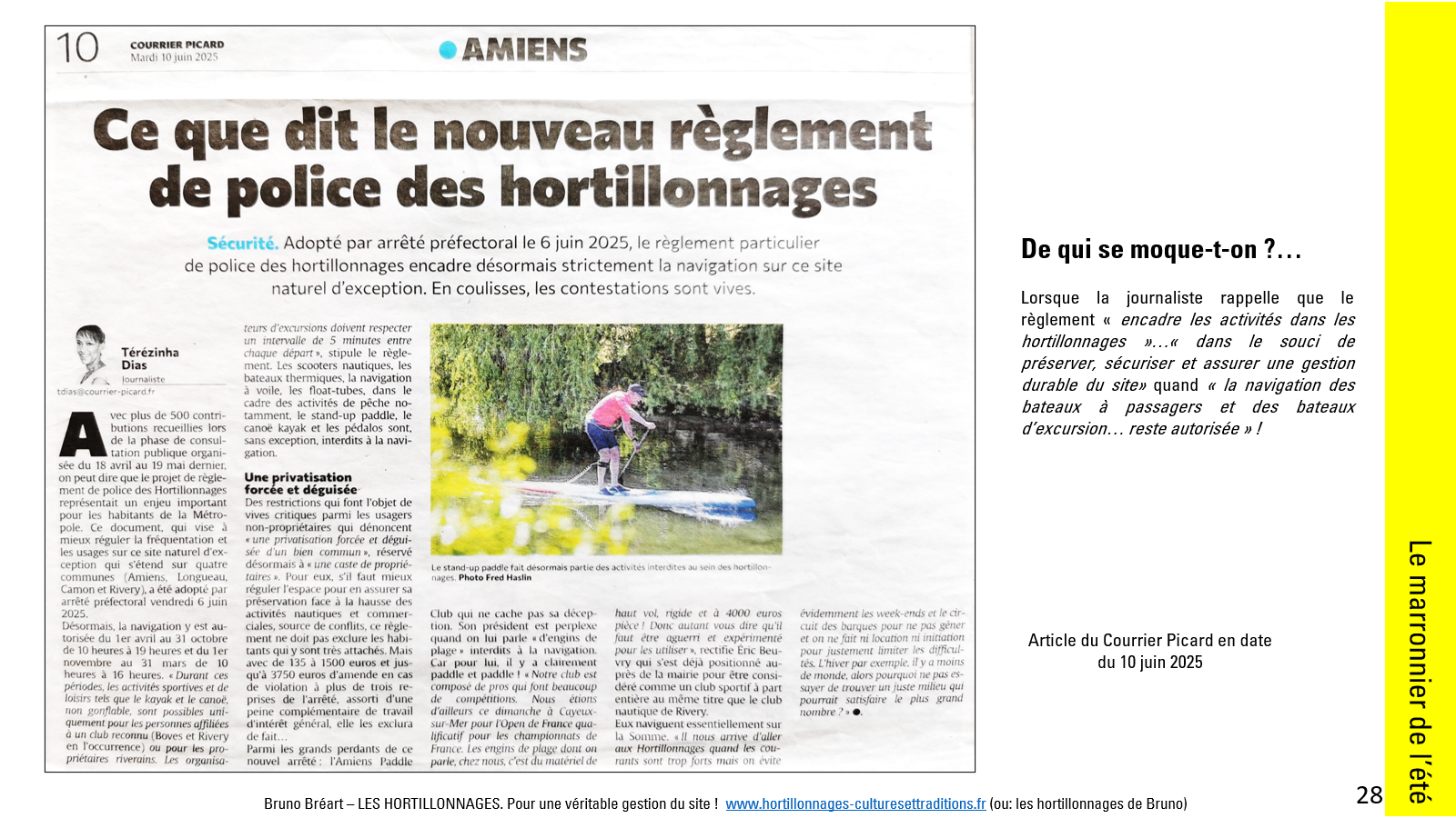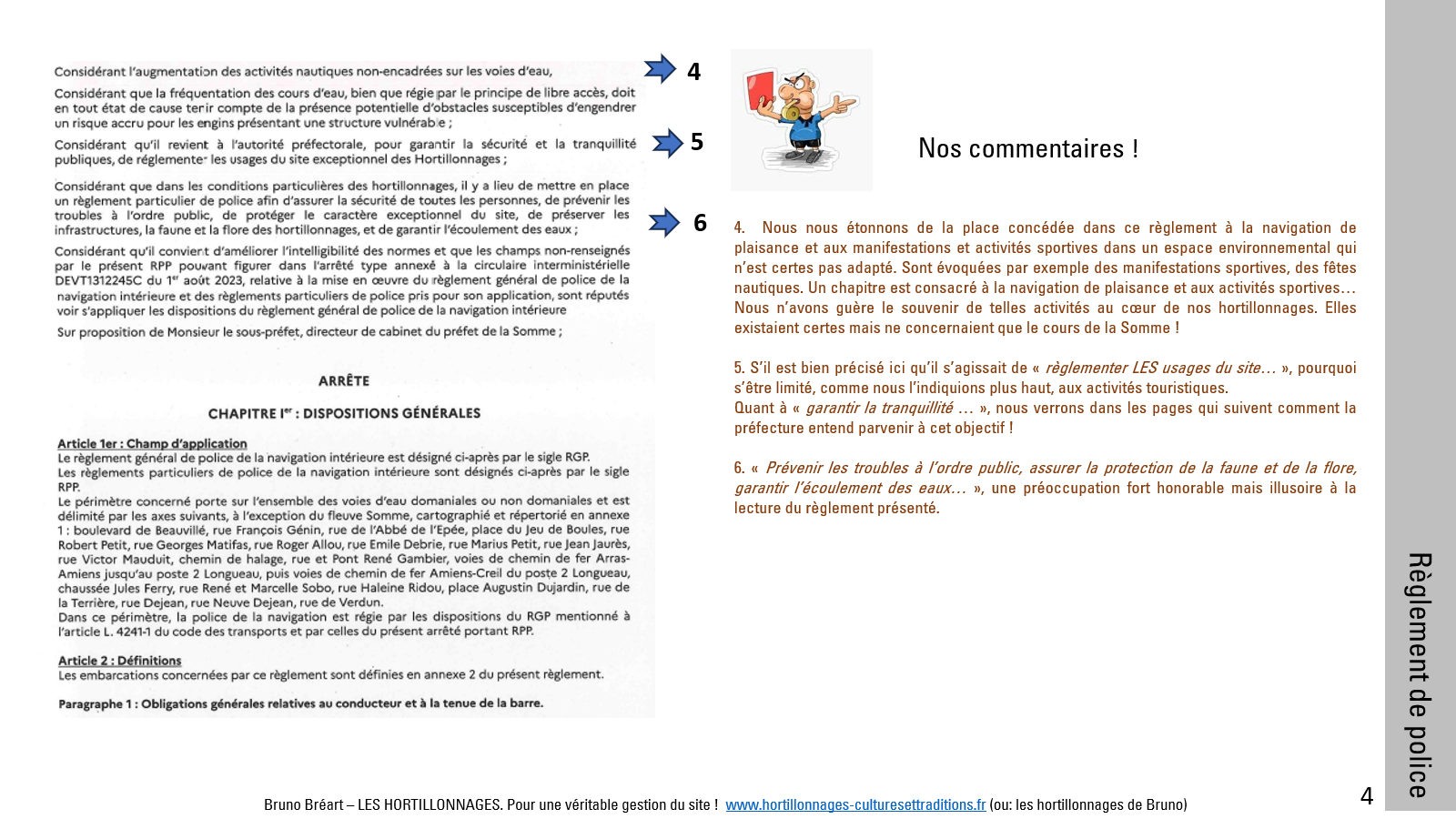 Formule souvent usitée au sein de nos administrations; normal me direz-vous puisque nous évoquons nos hortillonnages ! Il semblerait en effet, à la lecture du règlement adopté, que la préfecture se soit limitée à satisfaire les "organisateurs d'activités" .