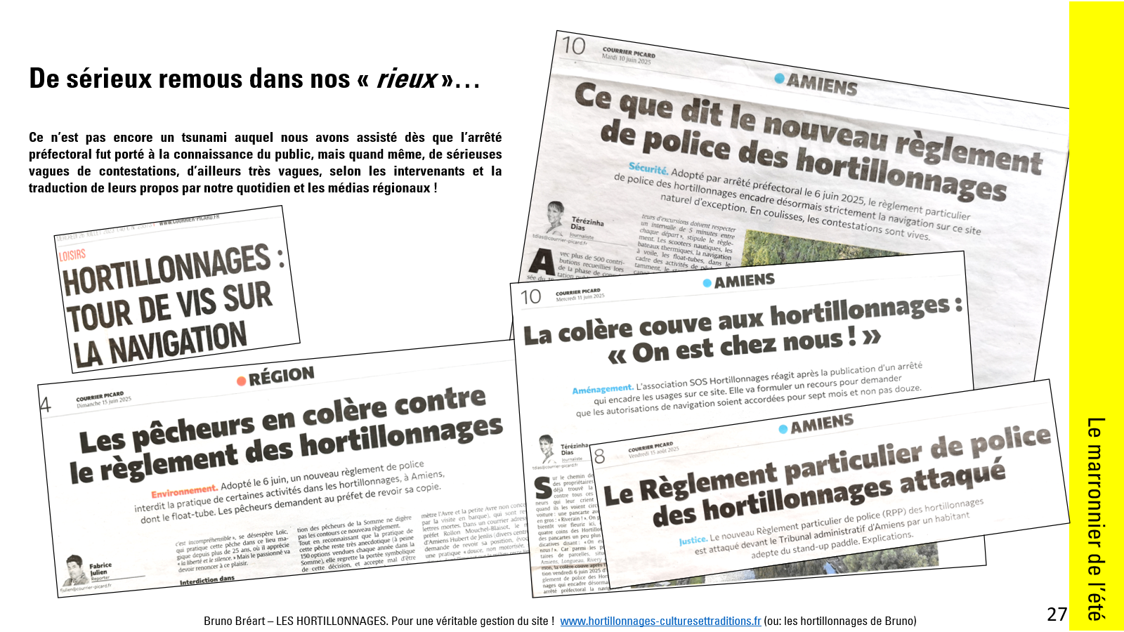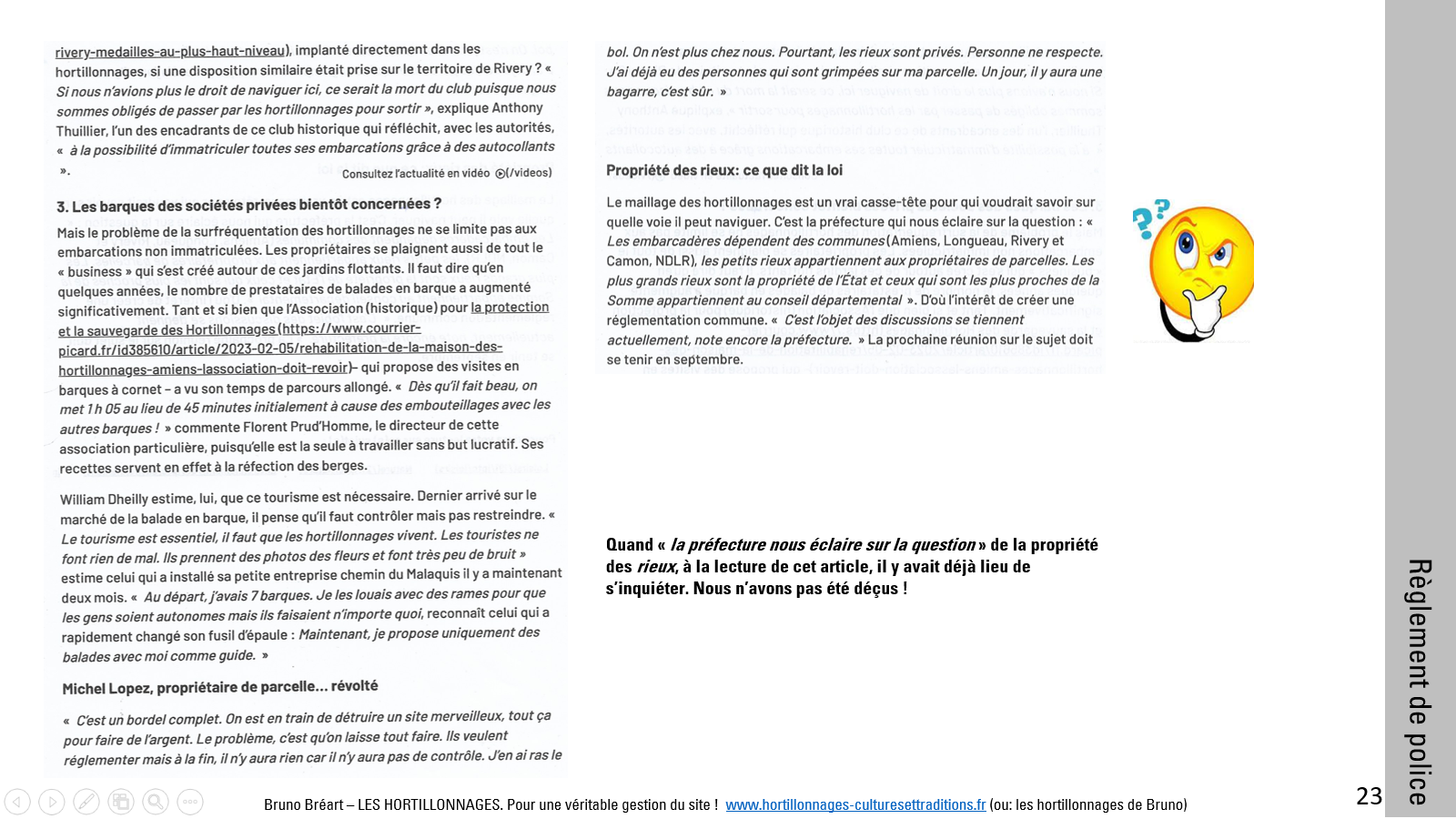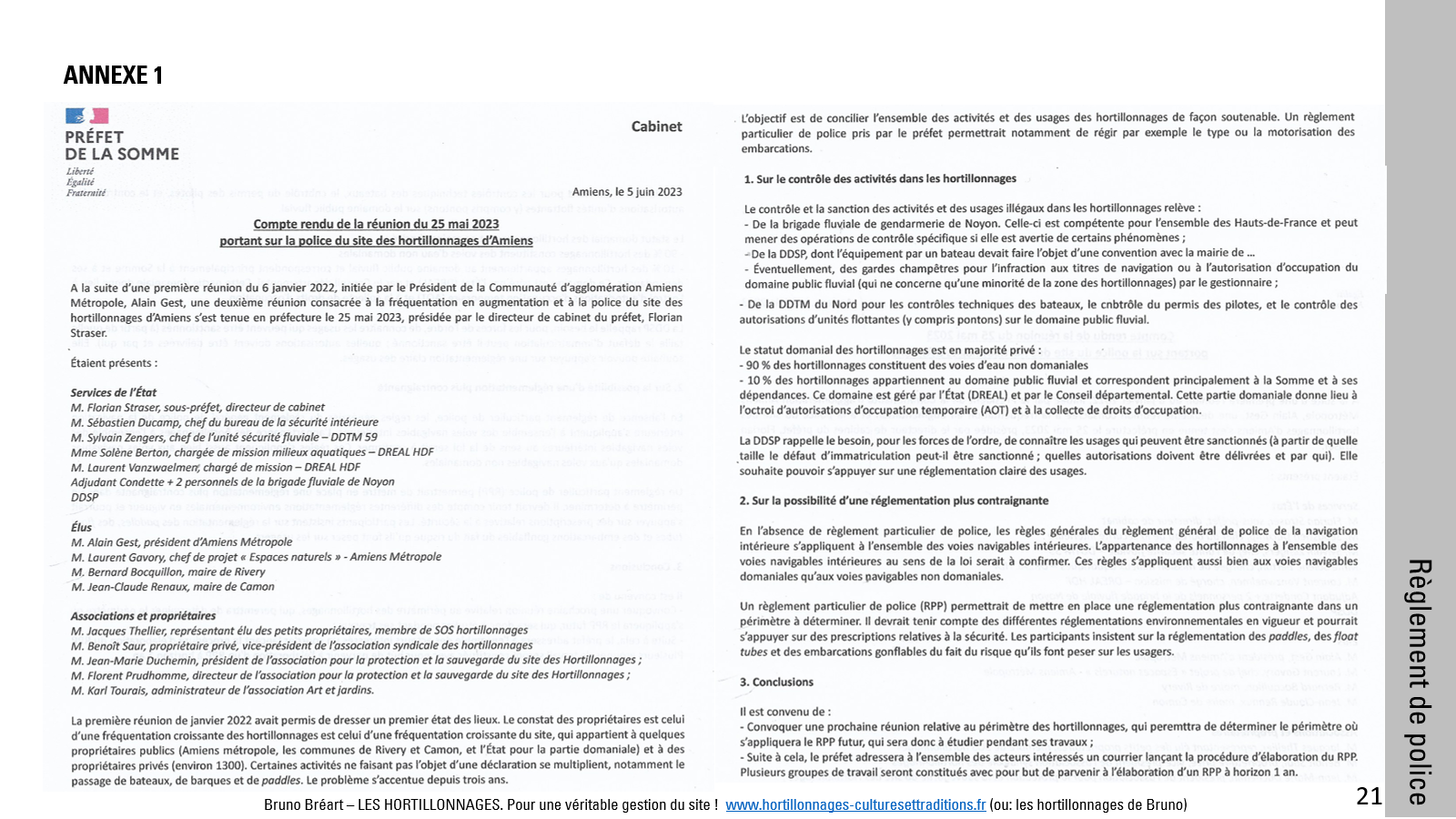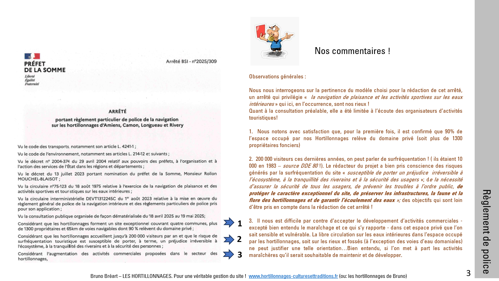 Formule souvent usitée au sein de nos administrations; normal me direz-vous puisque nous évoquons nos hortillonnages ! Il semblerait en effet, à la lecture du règlement adopté, que la préfecture se soit limitée à satisfaire les "organisateurs d'activités" .