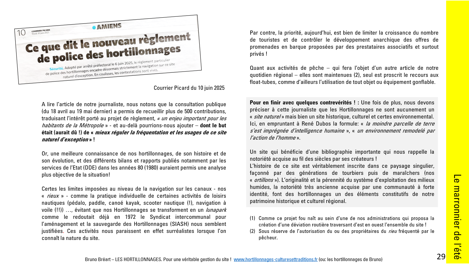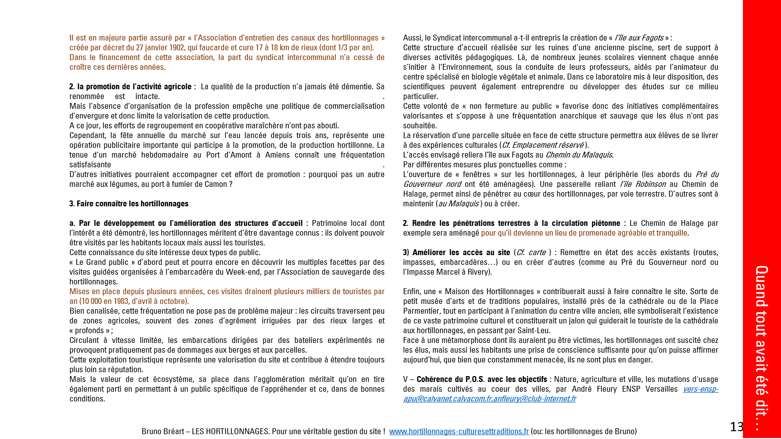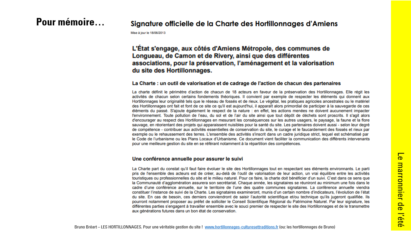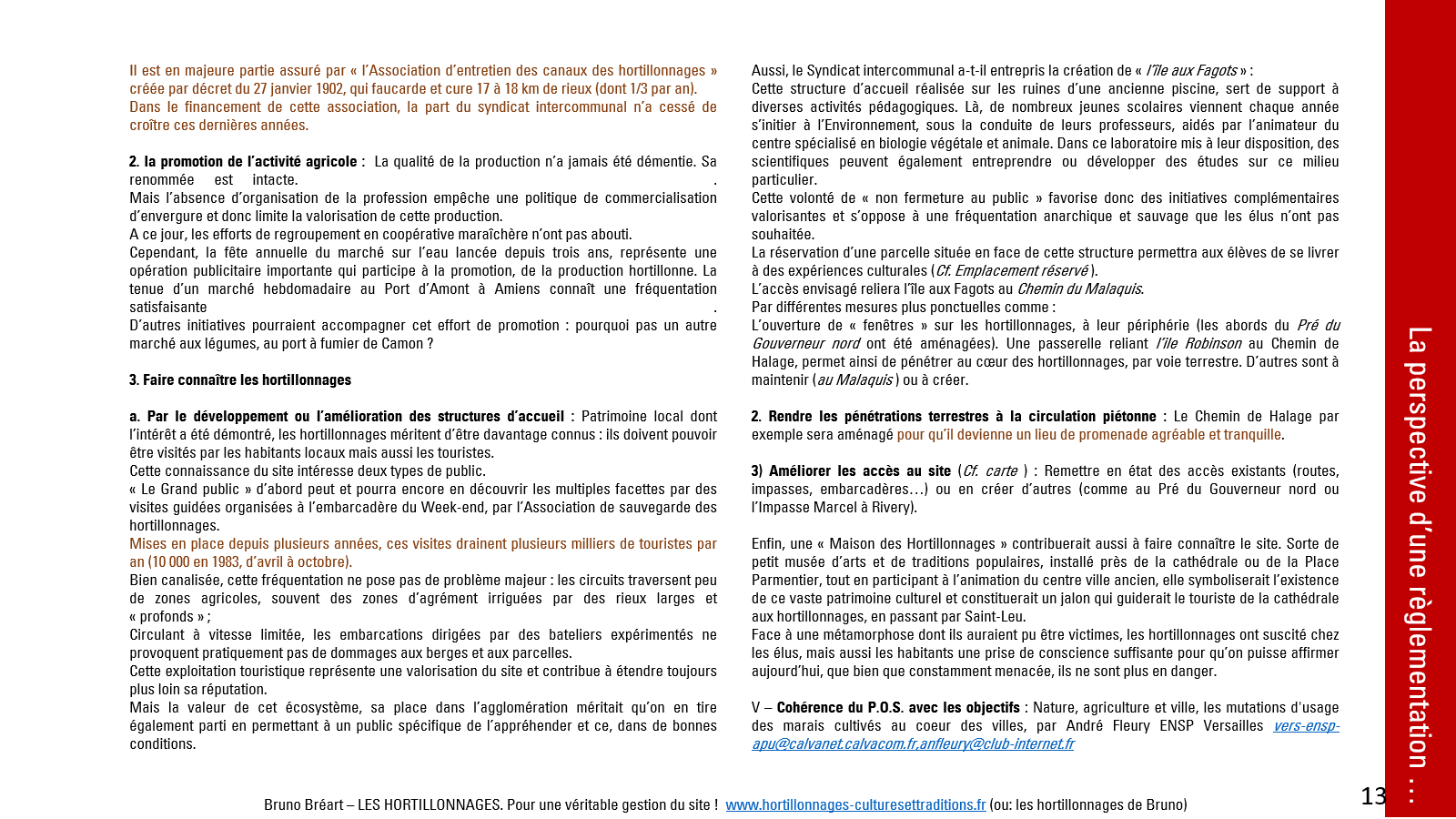 - Une véritable charte pour les usagers des hortillonnages : Voir notre page: (en préparation)