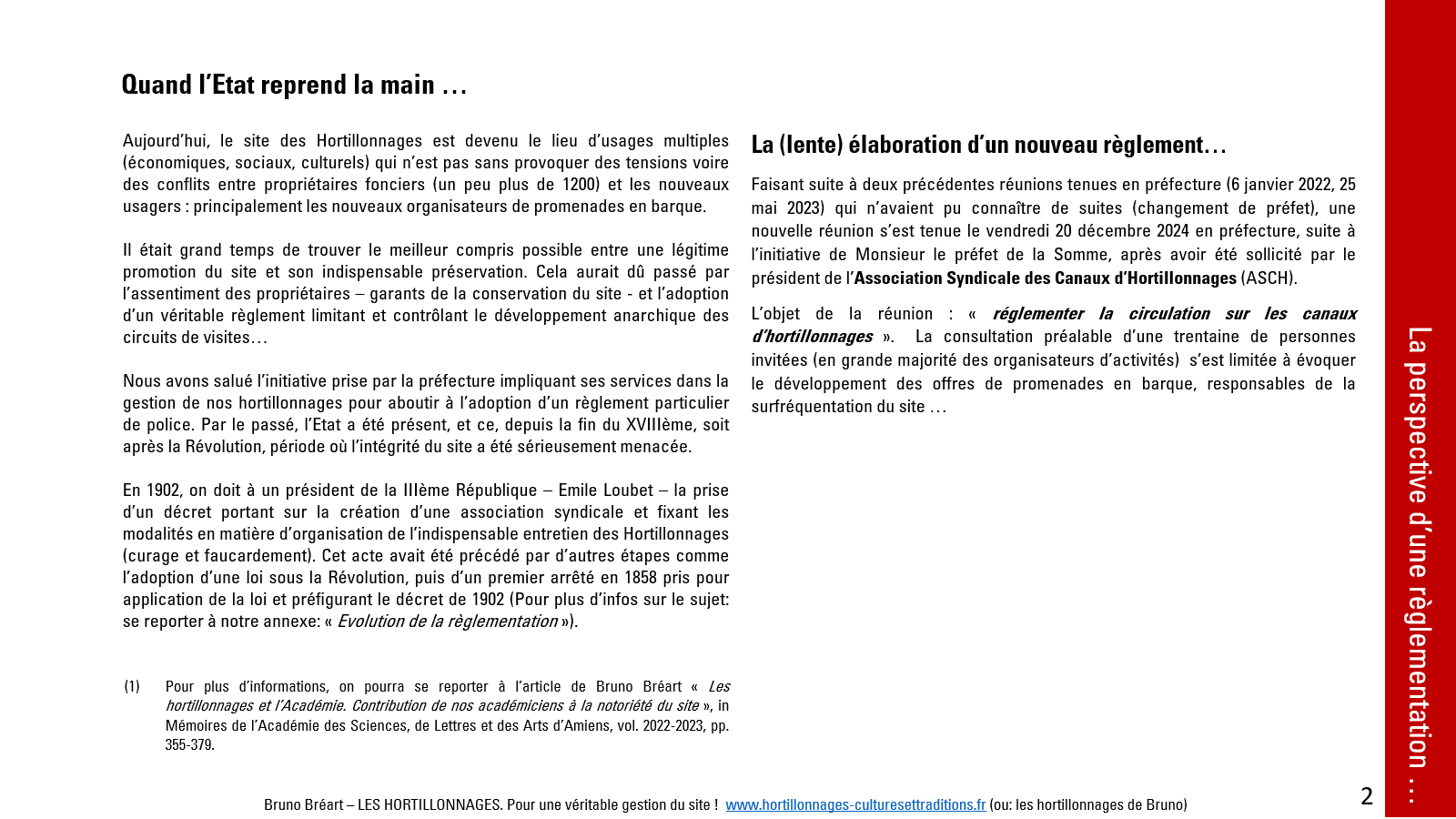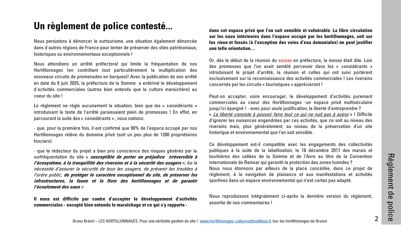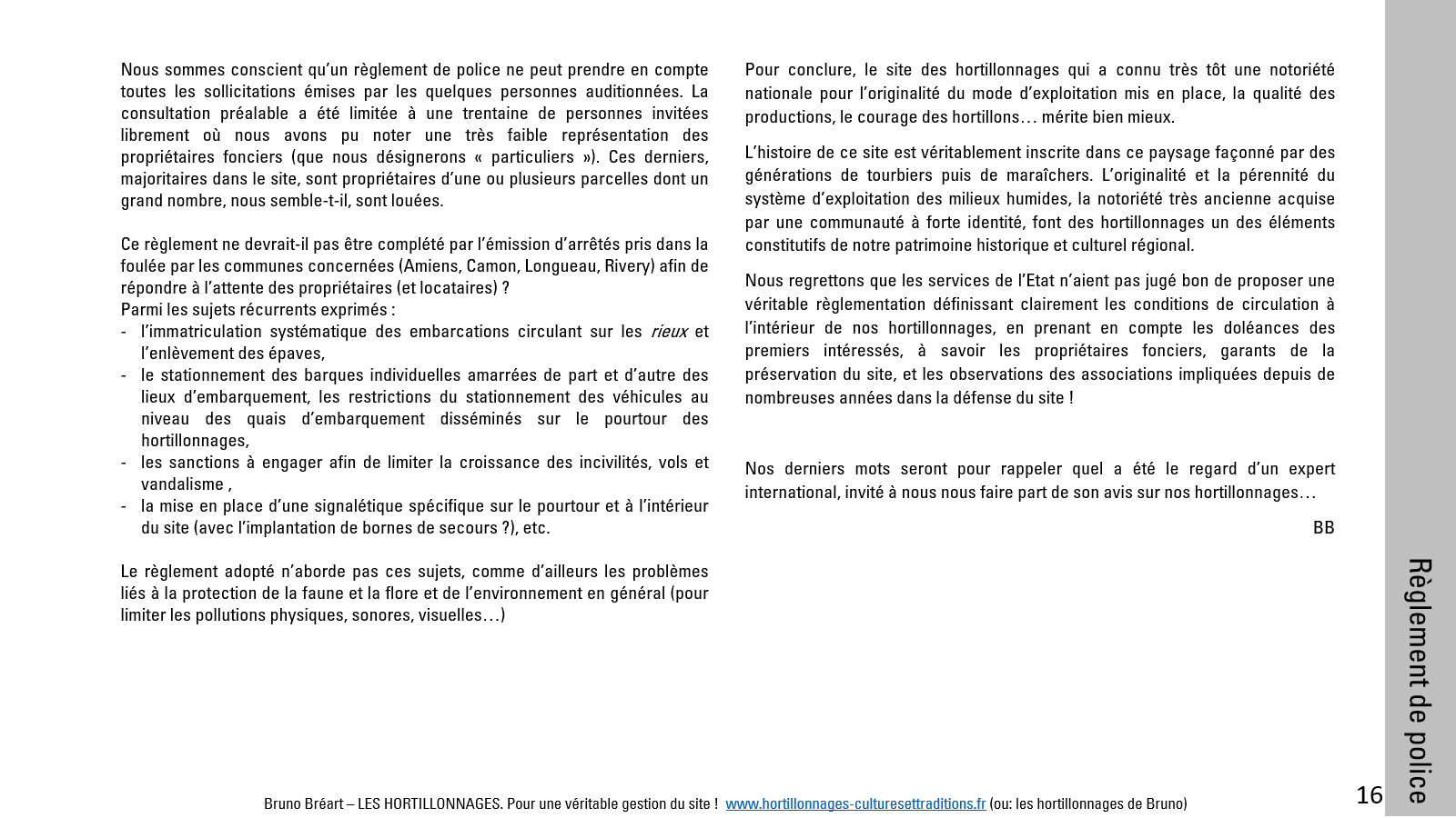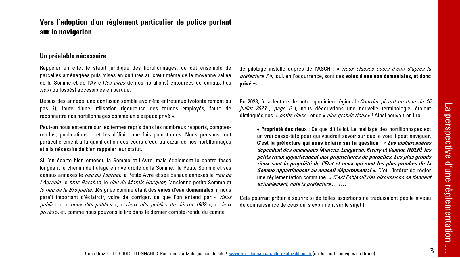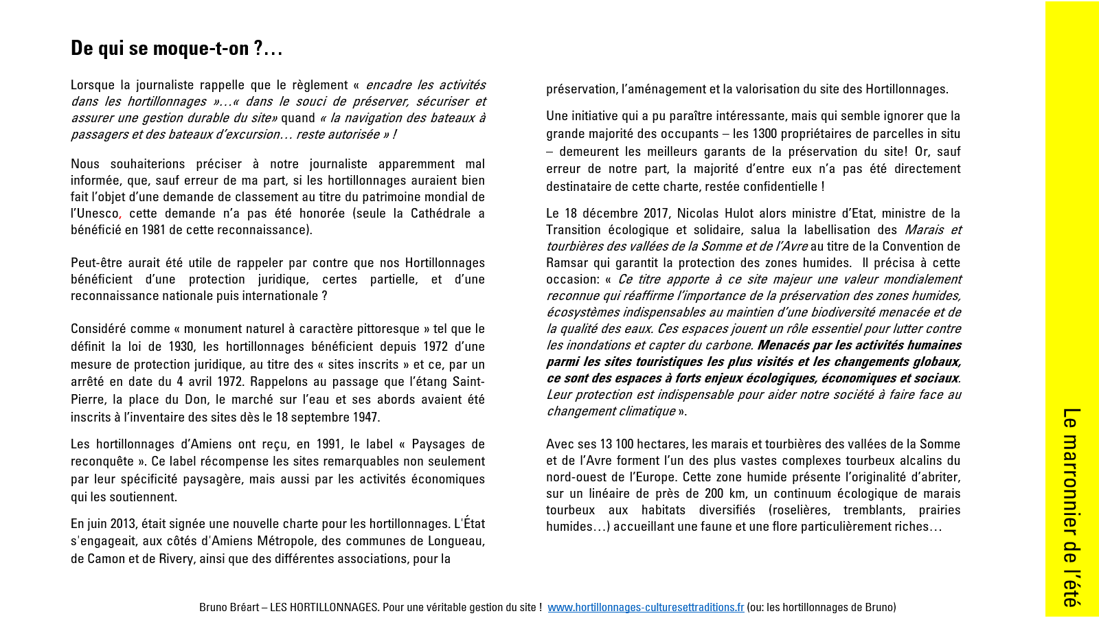 - Une véritable charte pour les usagers des hortillonnages : Voir notre page: (en préparation)
