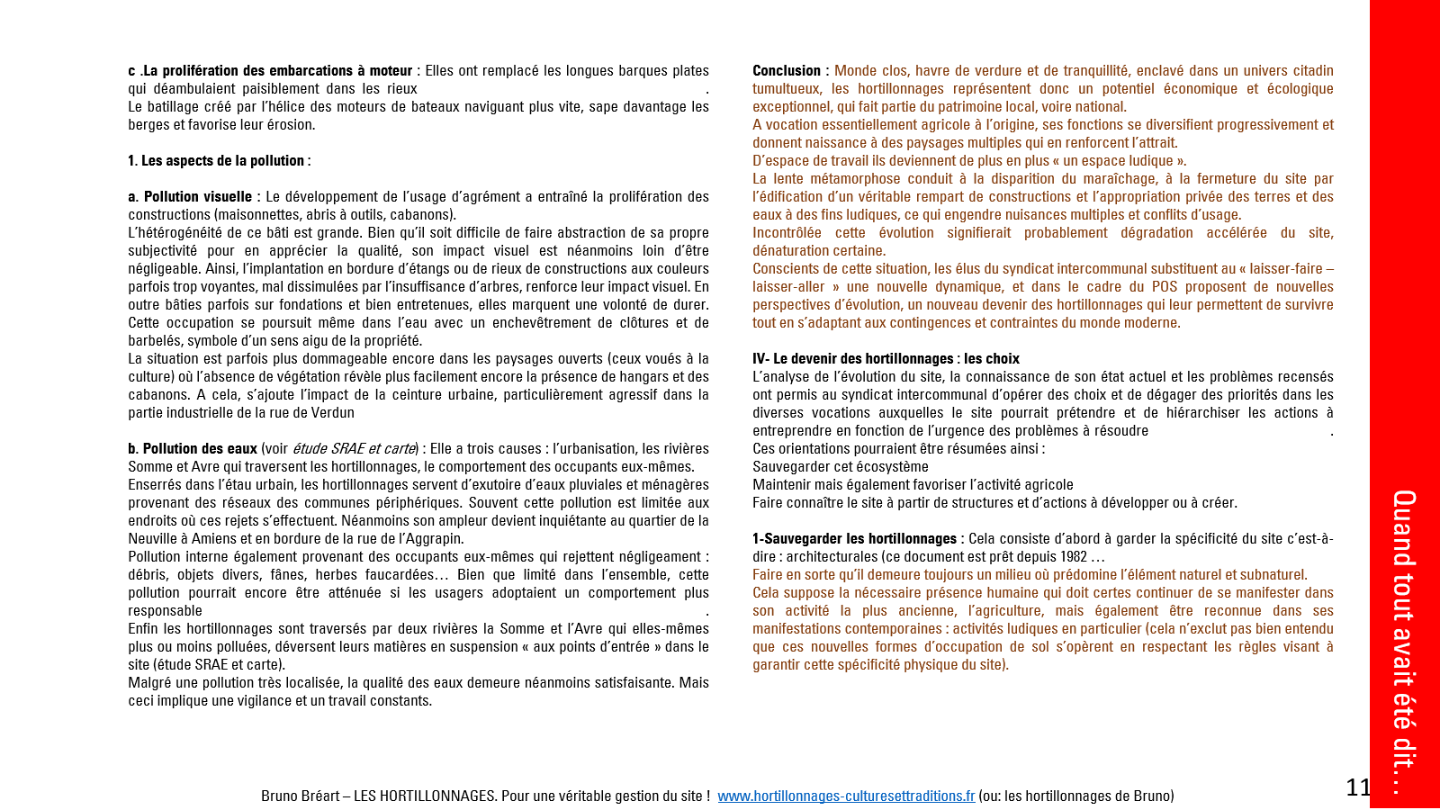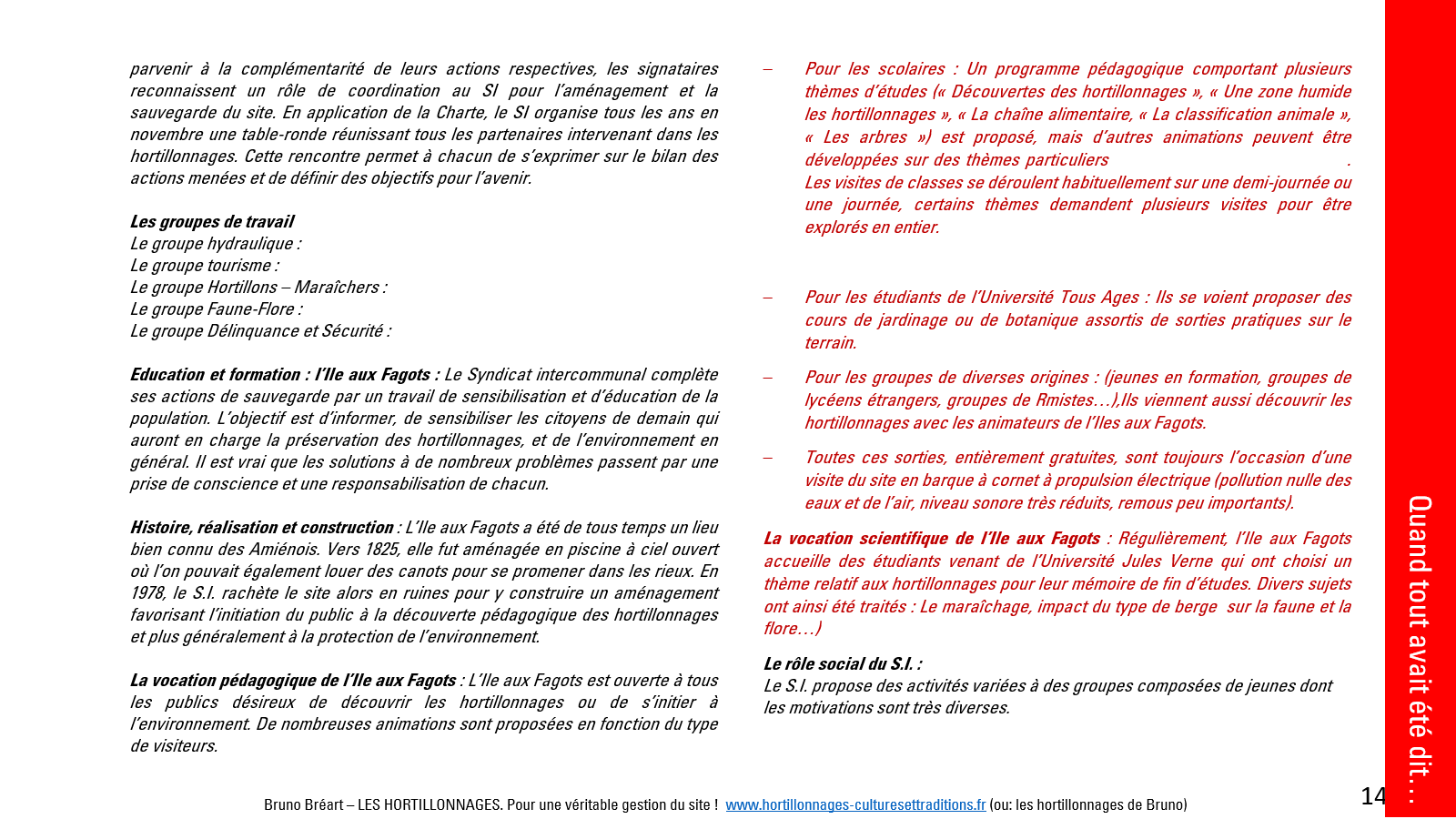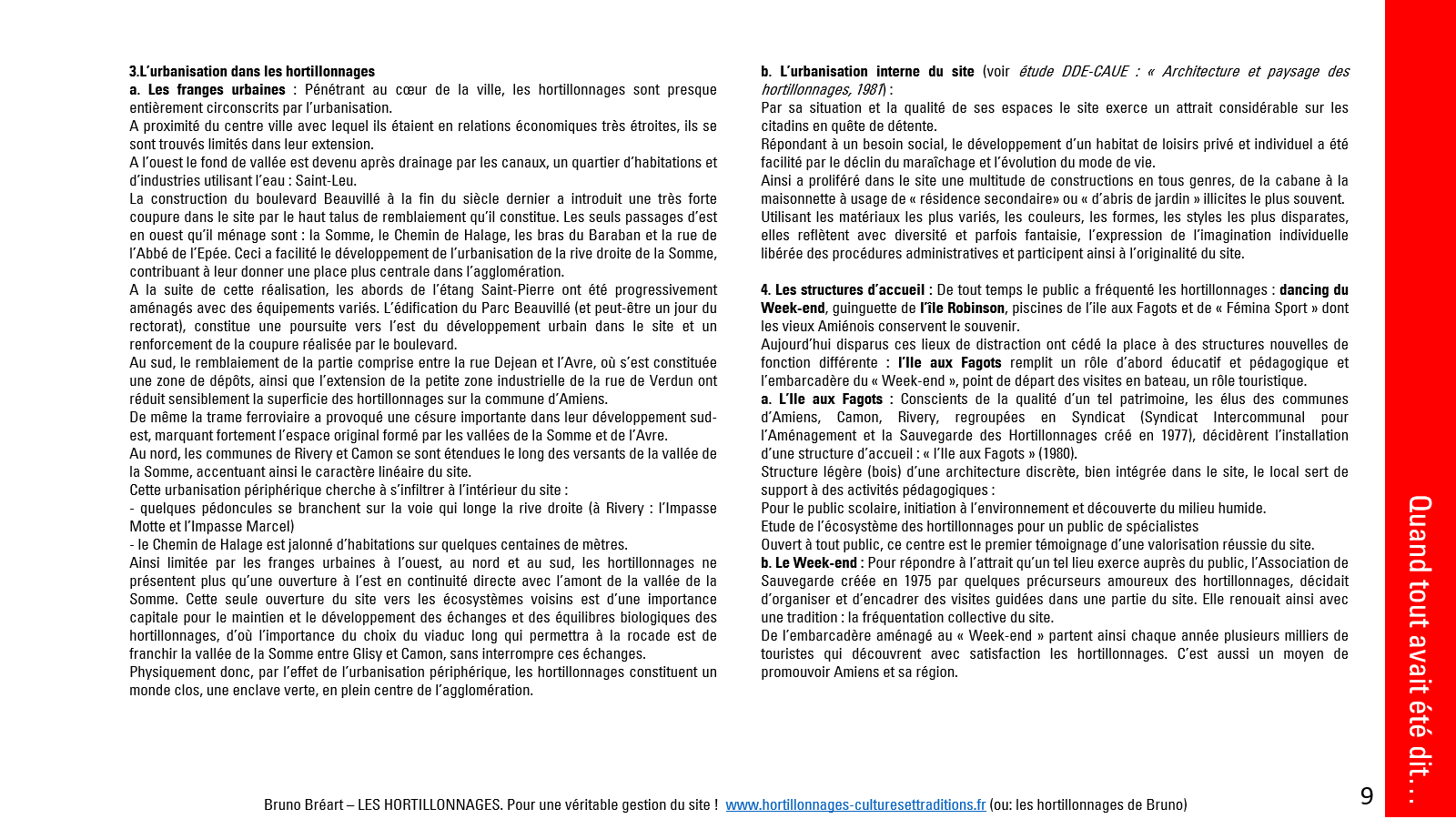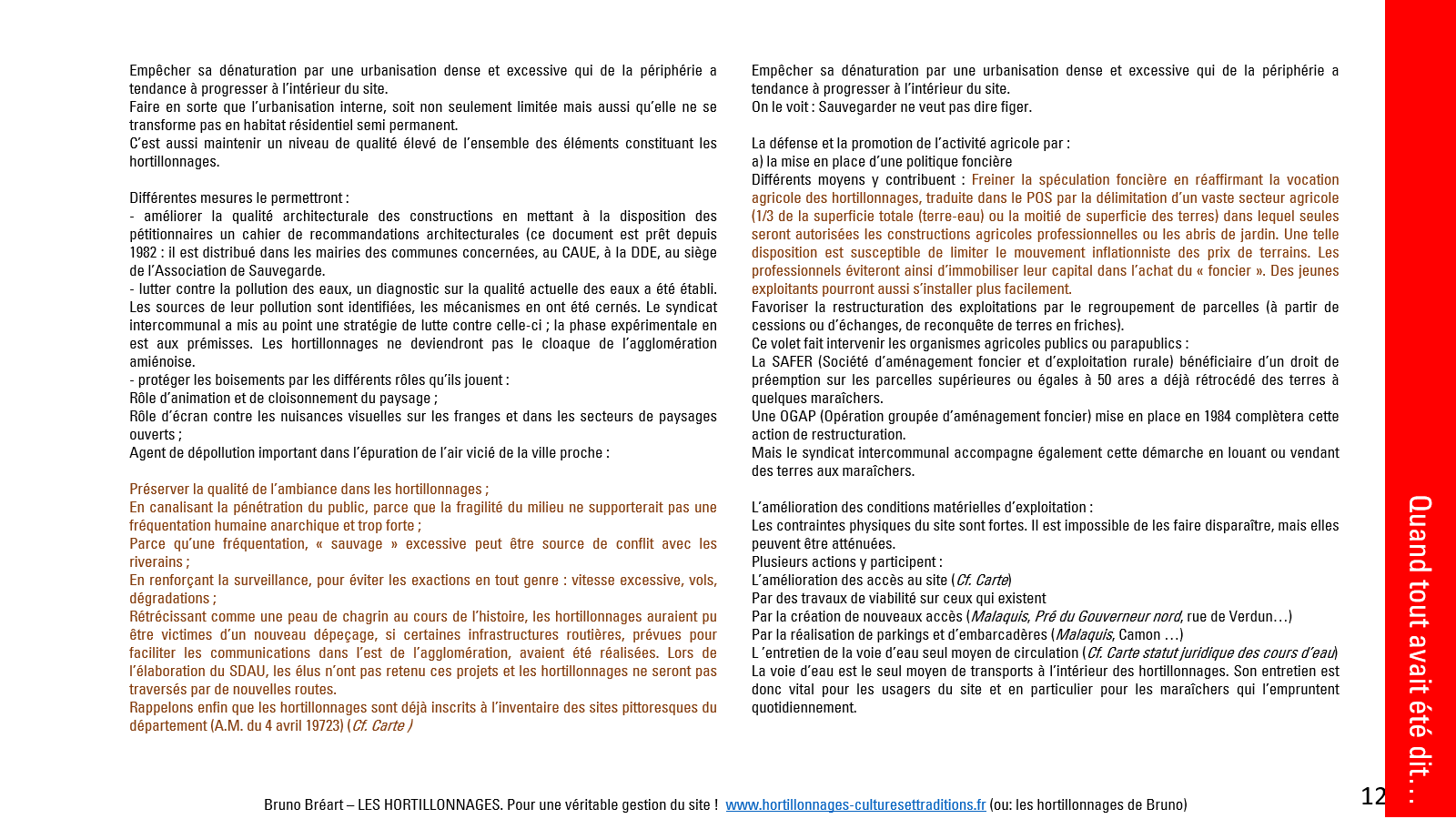 - Une véritable charte pour les usagers des hortillonnages : Voir notre page: (en préparation)