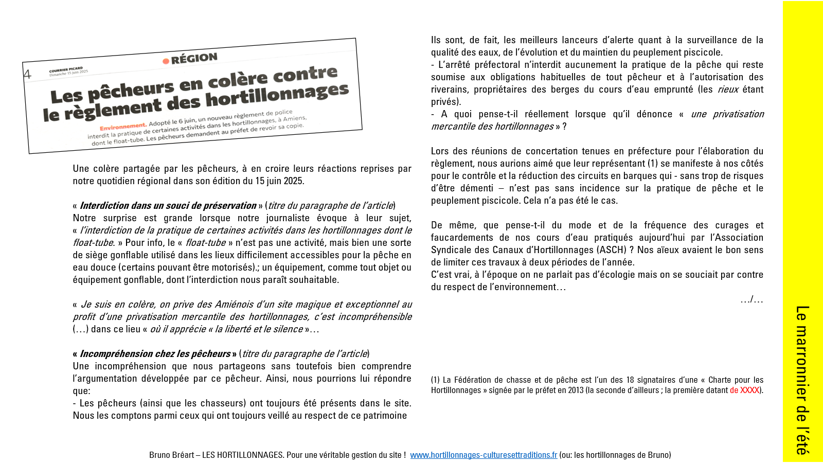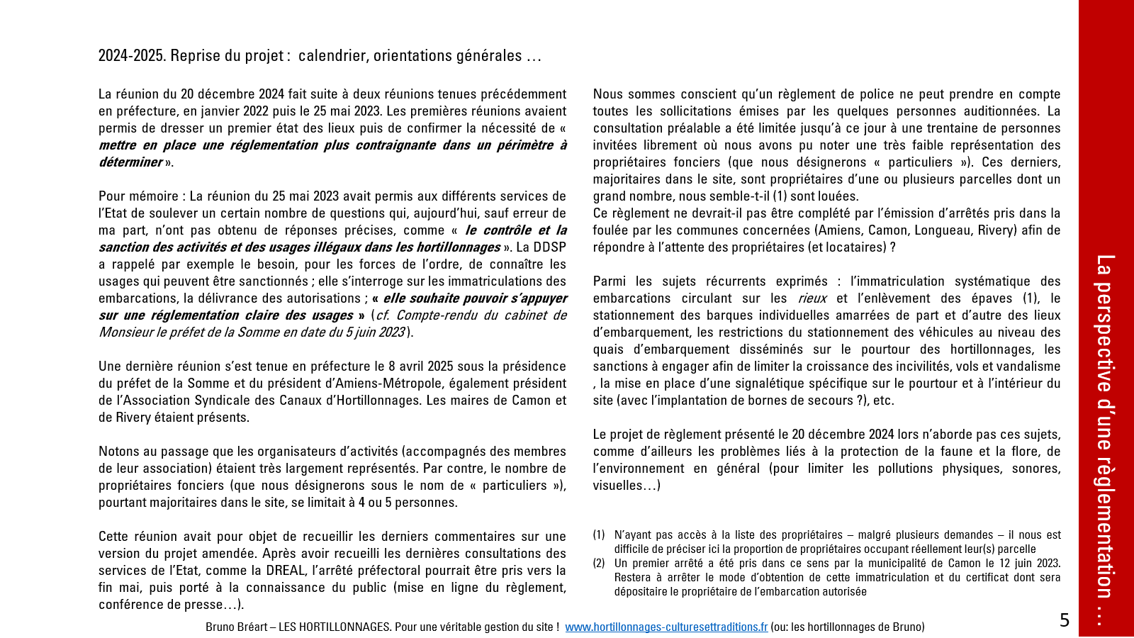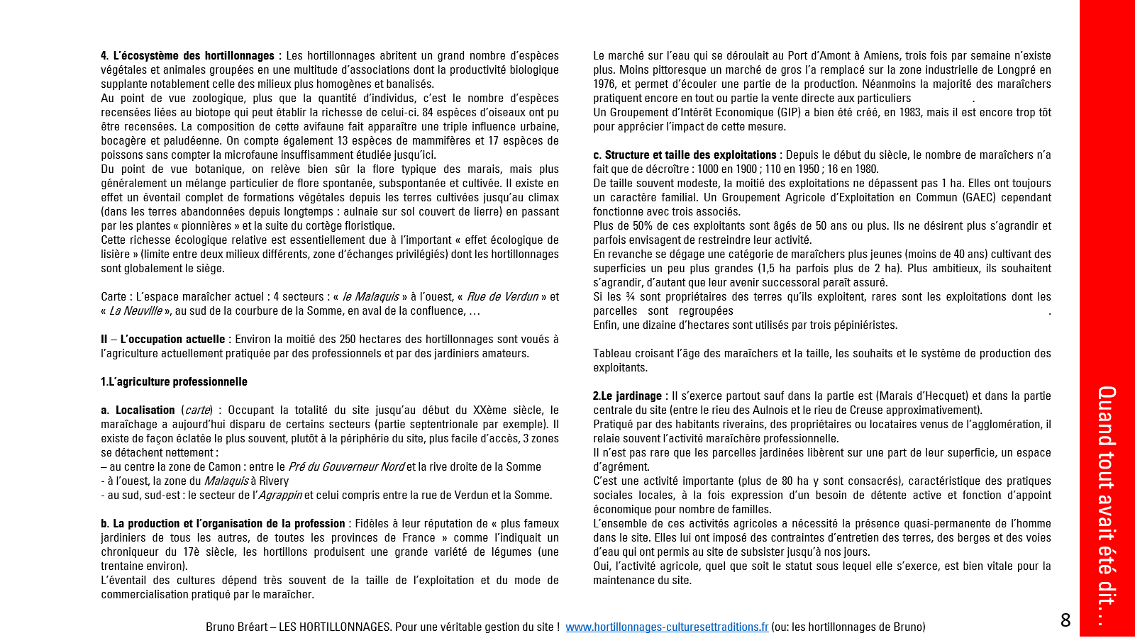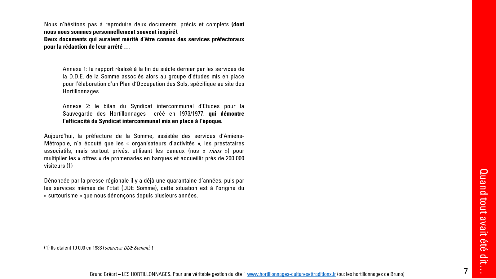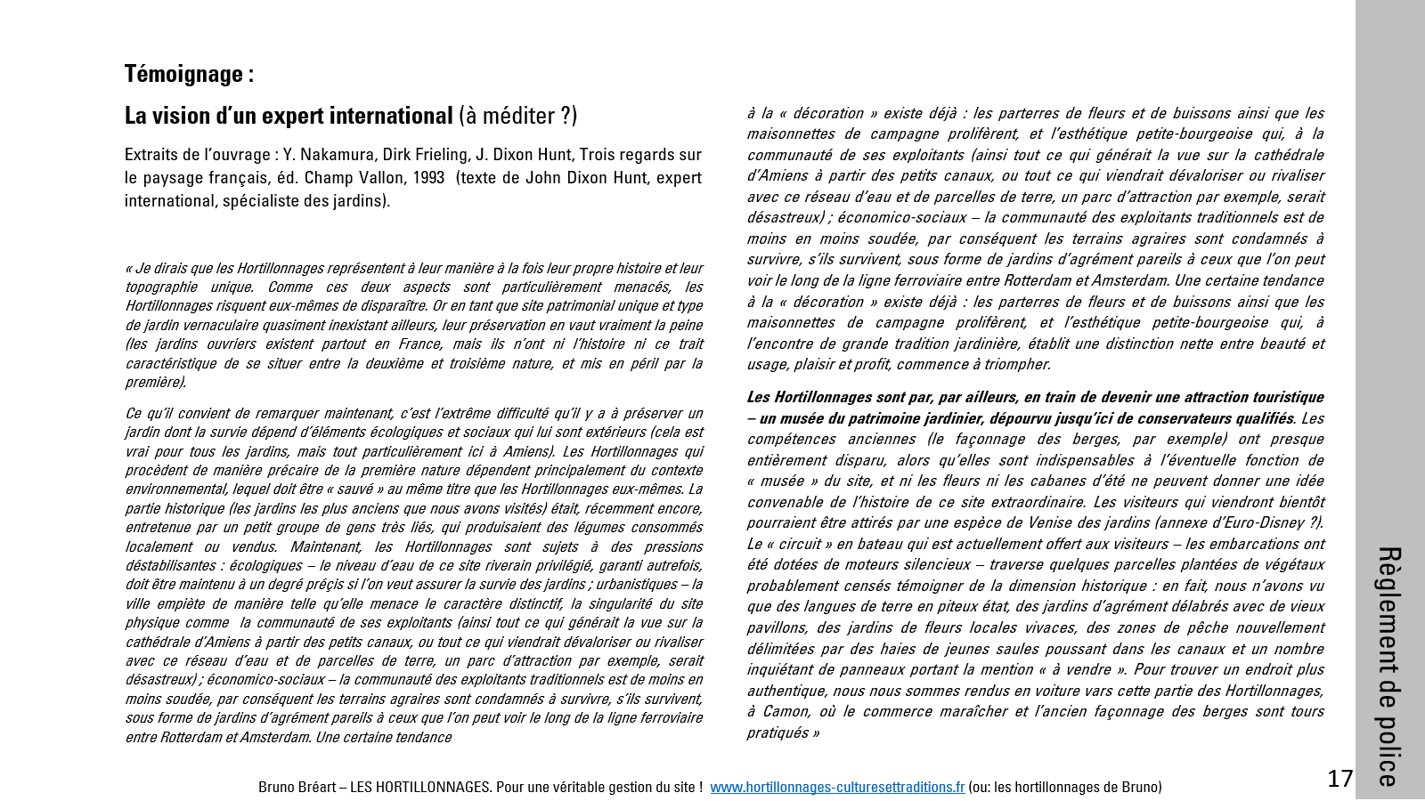 - Une véritable charte pour les usagers des hortillonnages : Voir notre page: (en préparation)