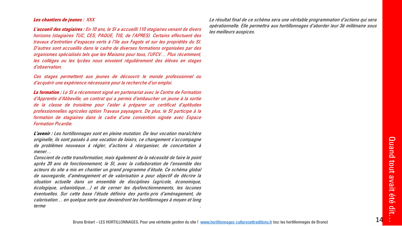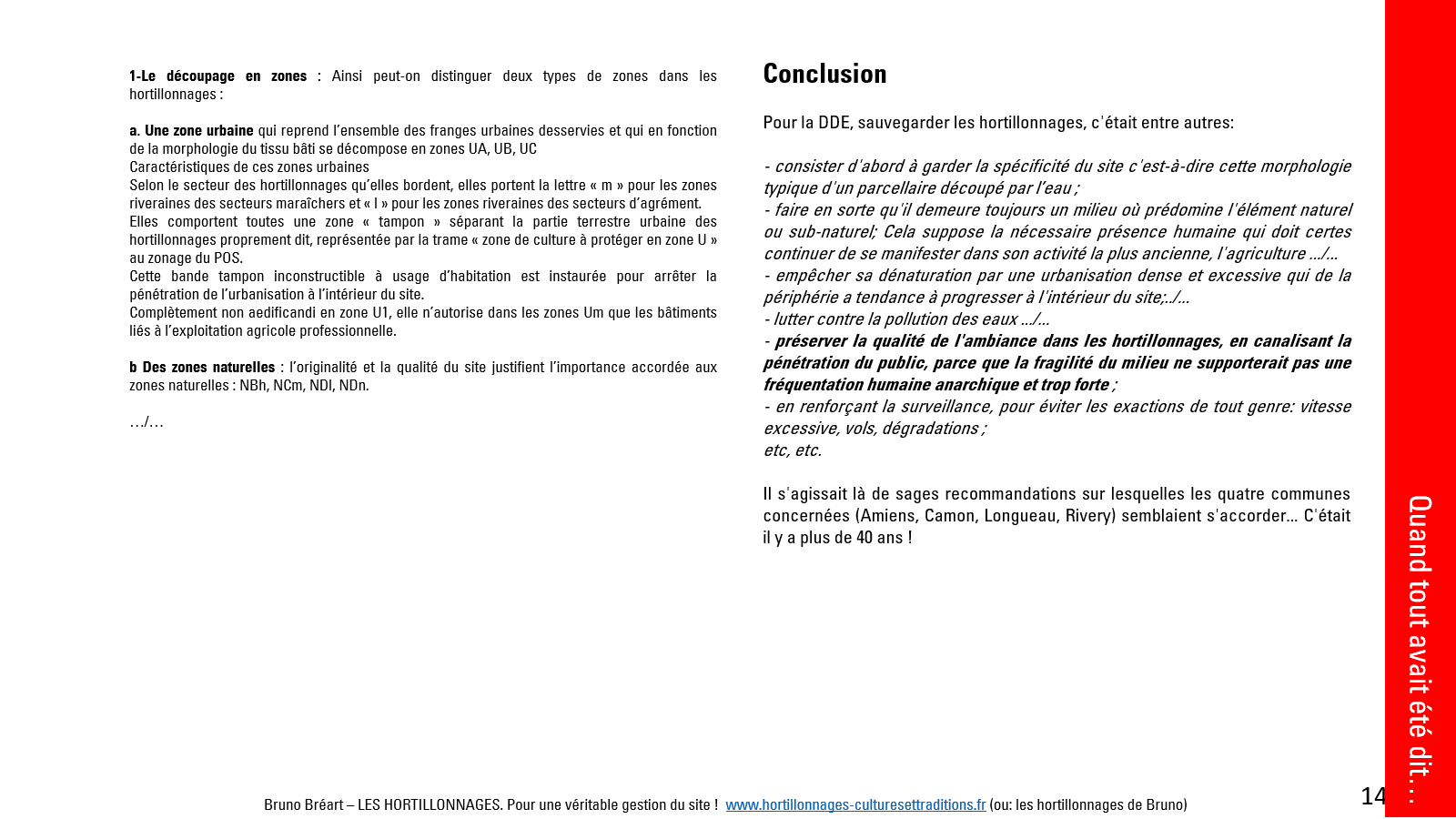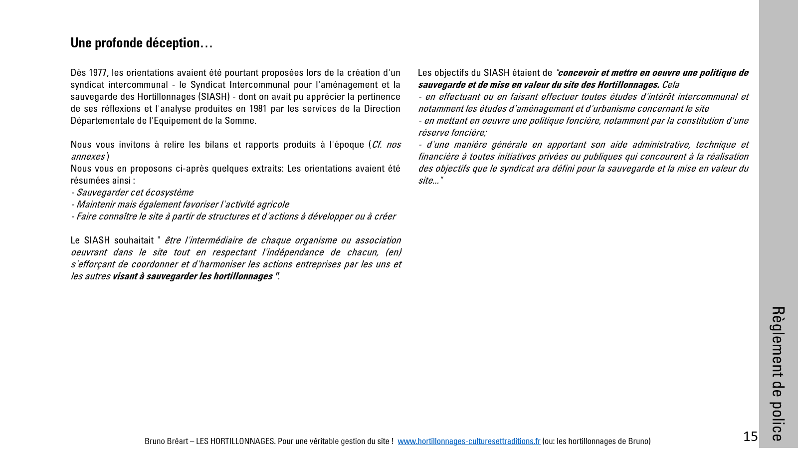Dès 1977, les orientations avaient été pourtant proposées lors de la création d'un syndicat intercommunal - le Syndicat Intercommunal pour l'aménagement et la sauvegarde des Hortillonnages (SIASH) - dont on avait pu apprécier la pertinence de ses réflexions et l'analyse produites en 1981 par les services de la Direction Départementale de l'Equipement de la Somme.